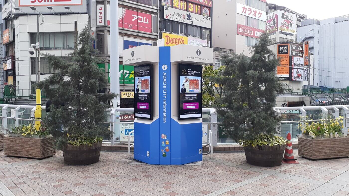 北千住駅前の災害用デジタルサイネージ(写真提供:表示灯株式会社)