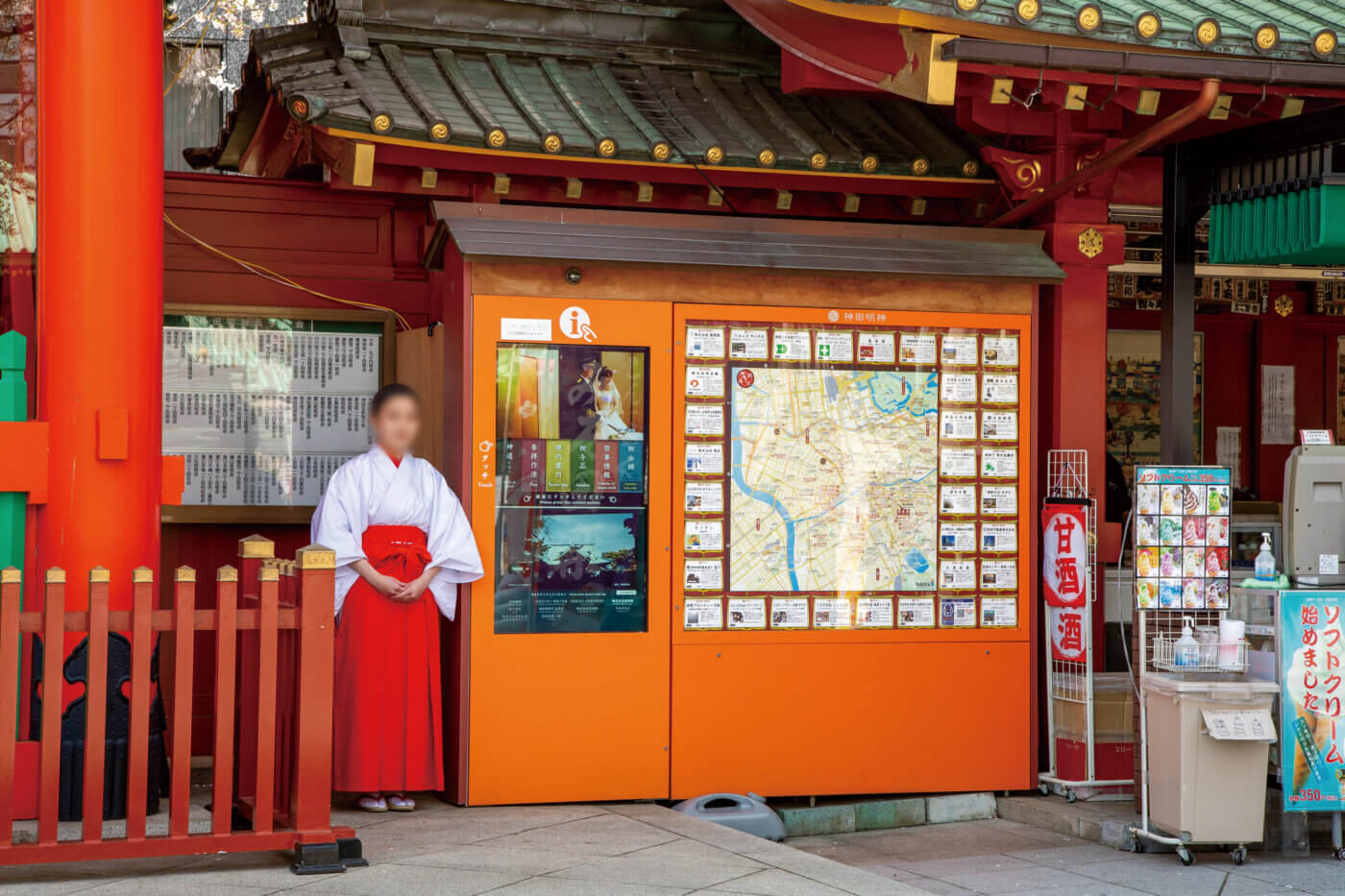 神社・寺院ナビタでは、寺社の由緒書きや参拝方法を様々な言語で表示できる。写真は神田明神(写真提供:表示灯株式会社)