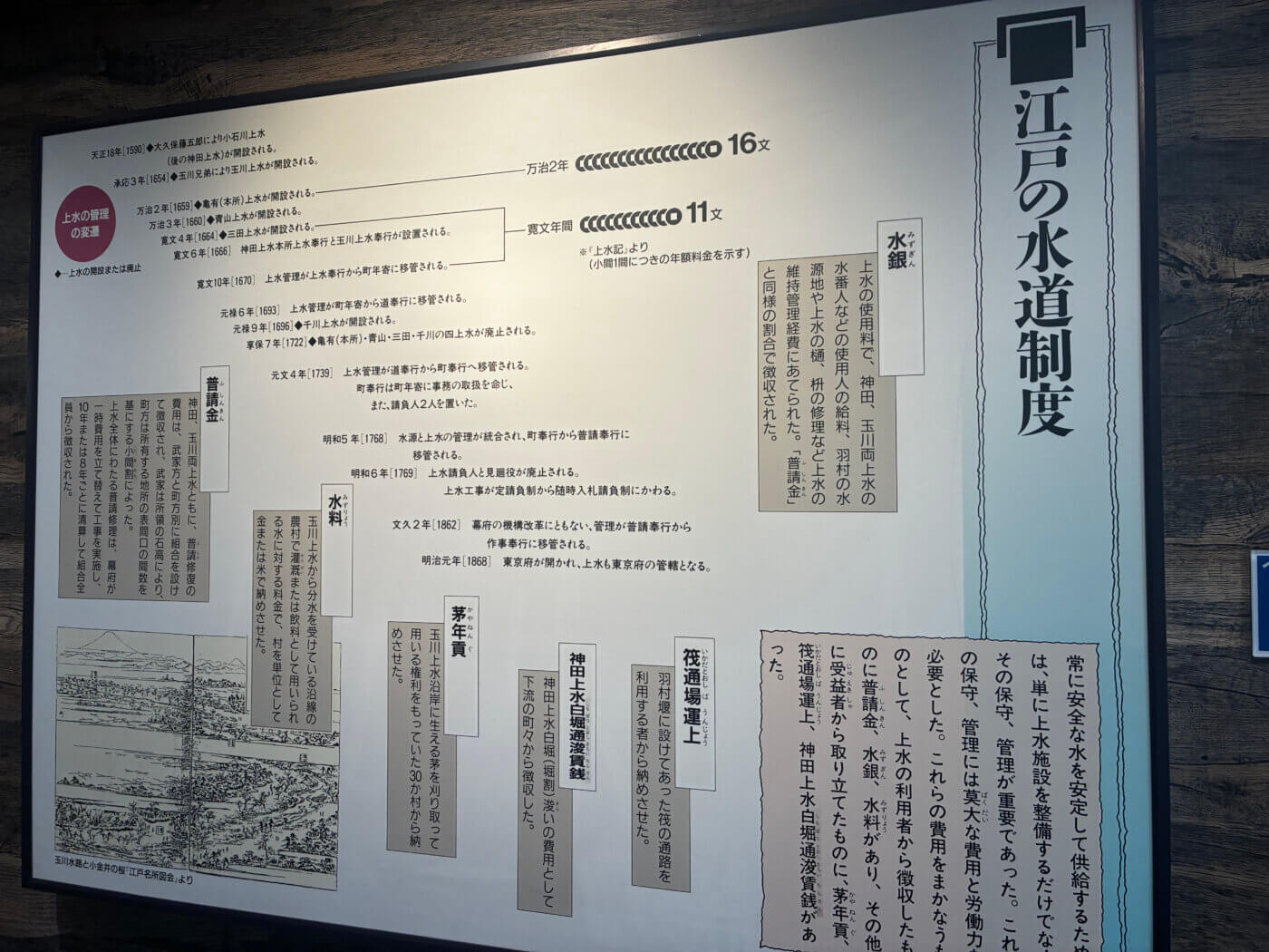 江戸では飲み水を供給するのが「上水」、農耕用として使用する水を供給するのが「用水」という訳です。上水と用水、明確に違うことを初めて知りました……。