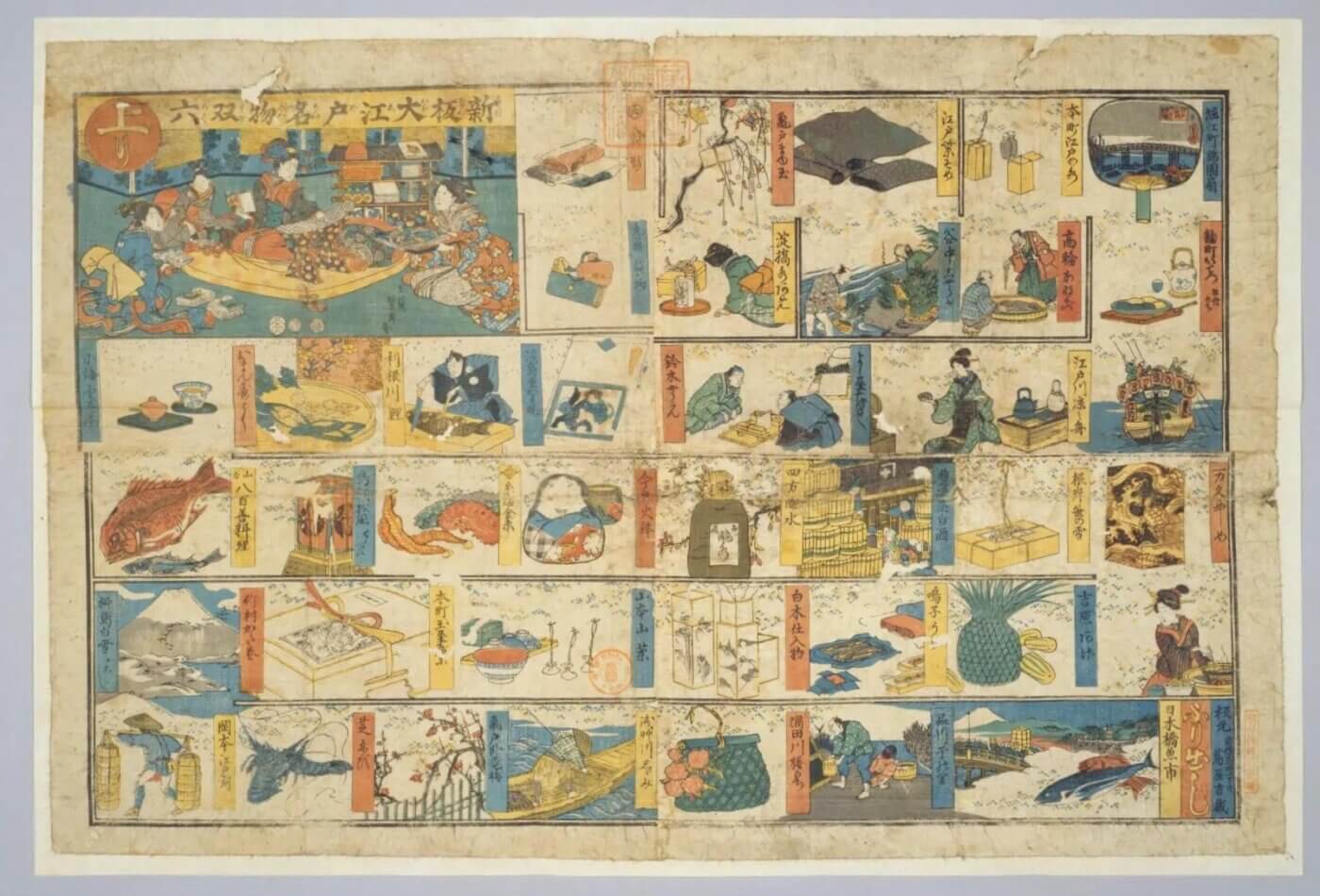 江戸の流行がズラリと並んだ『新板大江戸名物双六』には、