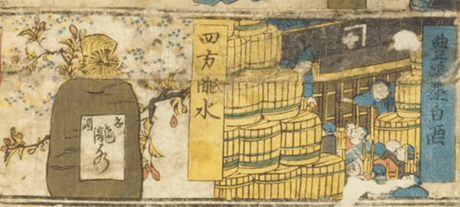 ひなまつりでお供えする「白酒」発祥の酒屋として有名な『豊島屋』の隣に「四方の瀧水」が描かれています。