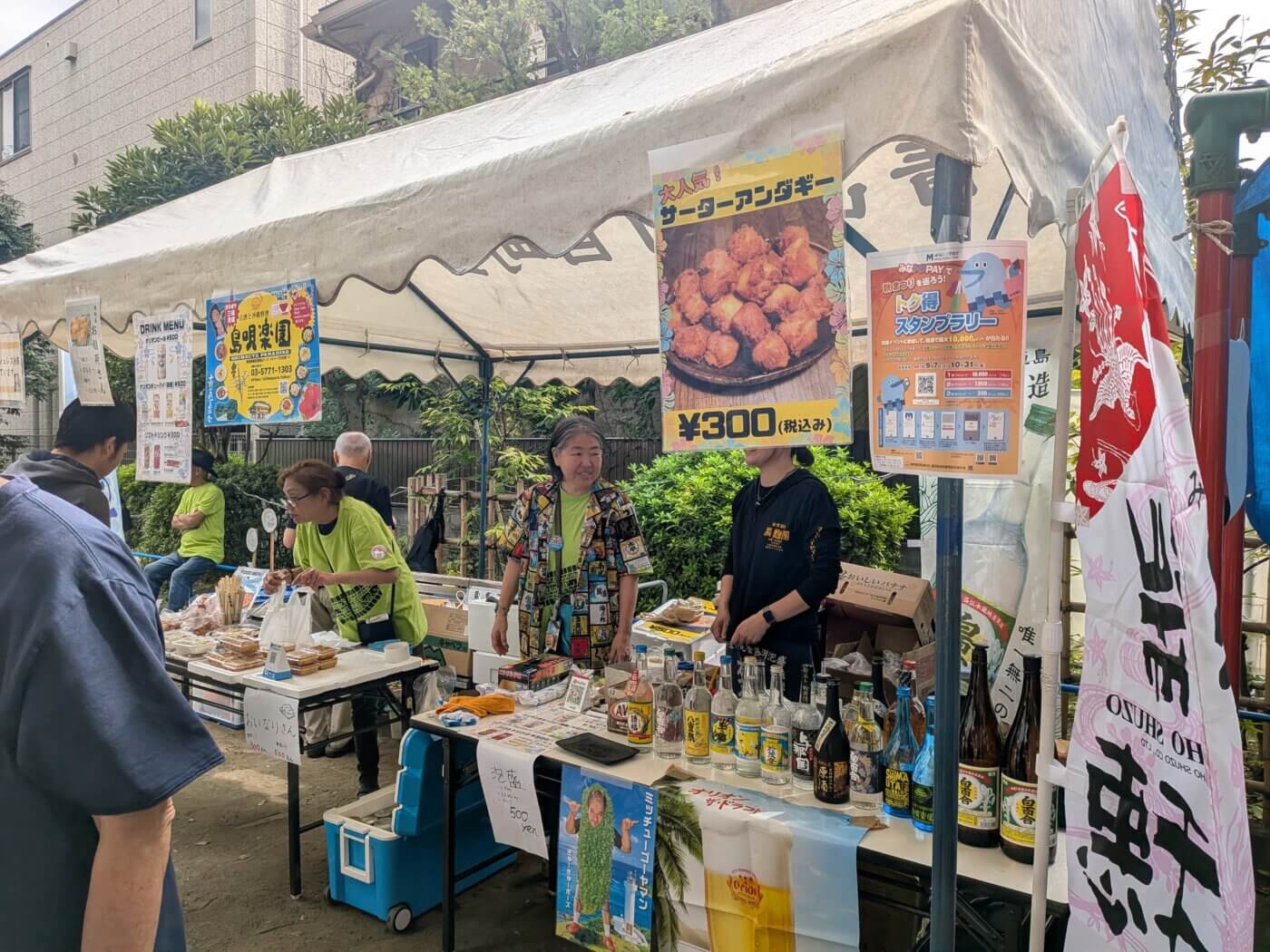 屋台では、沖縄の揚げ菓子「サータアンダギー」や、沖縄の炊き込みご飯の「ジューシー」のほか、餃子や唐揚げ、いなり寿司などの軽食、オリオンビールや泡盛など沖縄のお酒も各種販売されていました。
