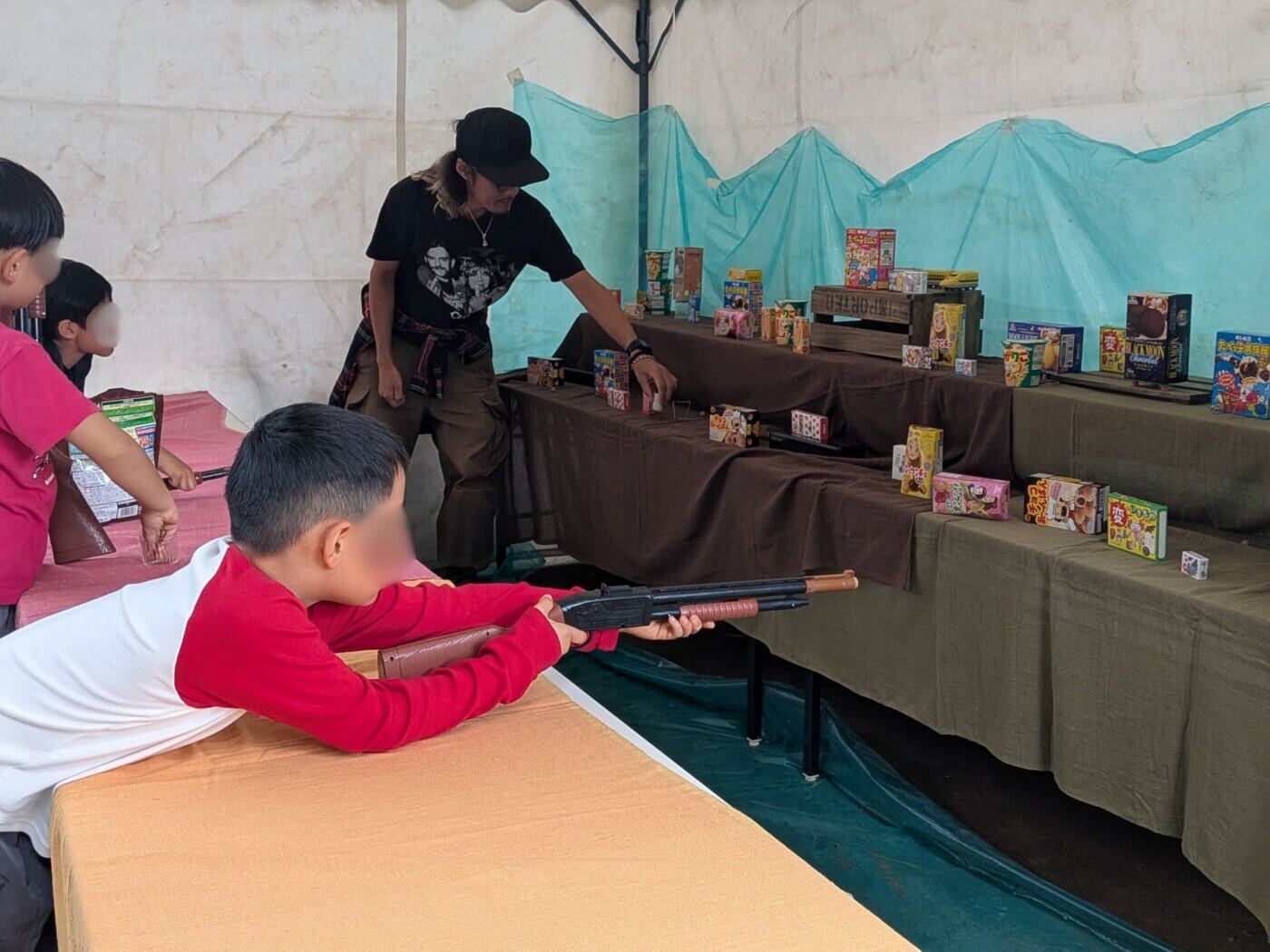会場に到着して最初に目に入ってきたのは射的で遊ぶ子どもたち。夢中になってお菓子に狙いを定める姿が印象的でした。