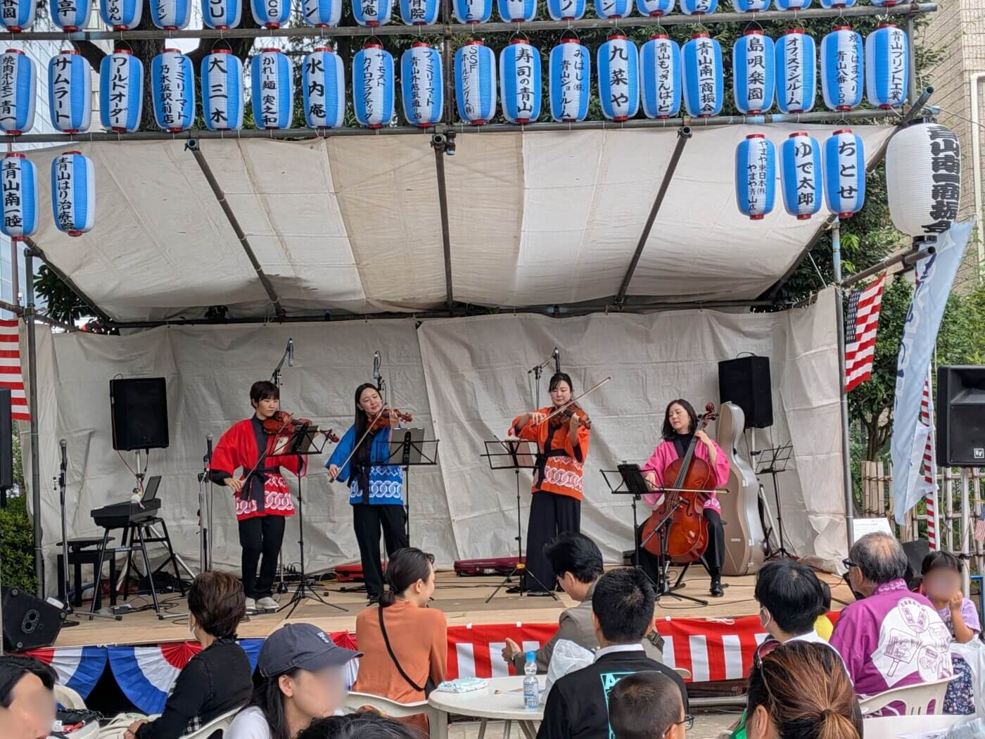 青山といえばオフィス街のイメージが強く、普段私たちが勤務の合間に利用するコンビニや飲食店でもサラリーマンやOLの姿がほとんど。ところが休日にお祭り会場に来てみると、思っていた以上に子どもたちが多く、とても驚きました。