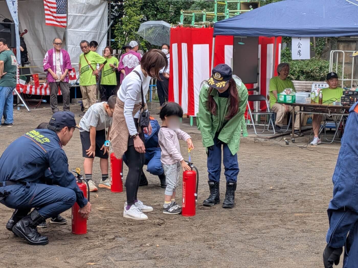 お子さんもママ・パパと楽しそうに消防訓練を体験していました。