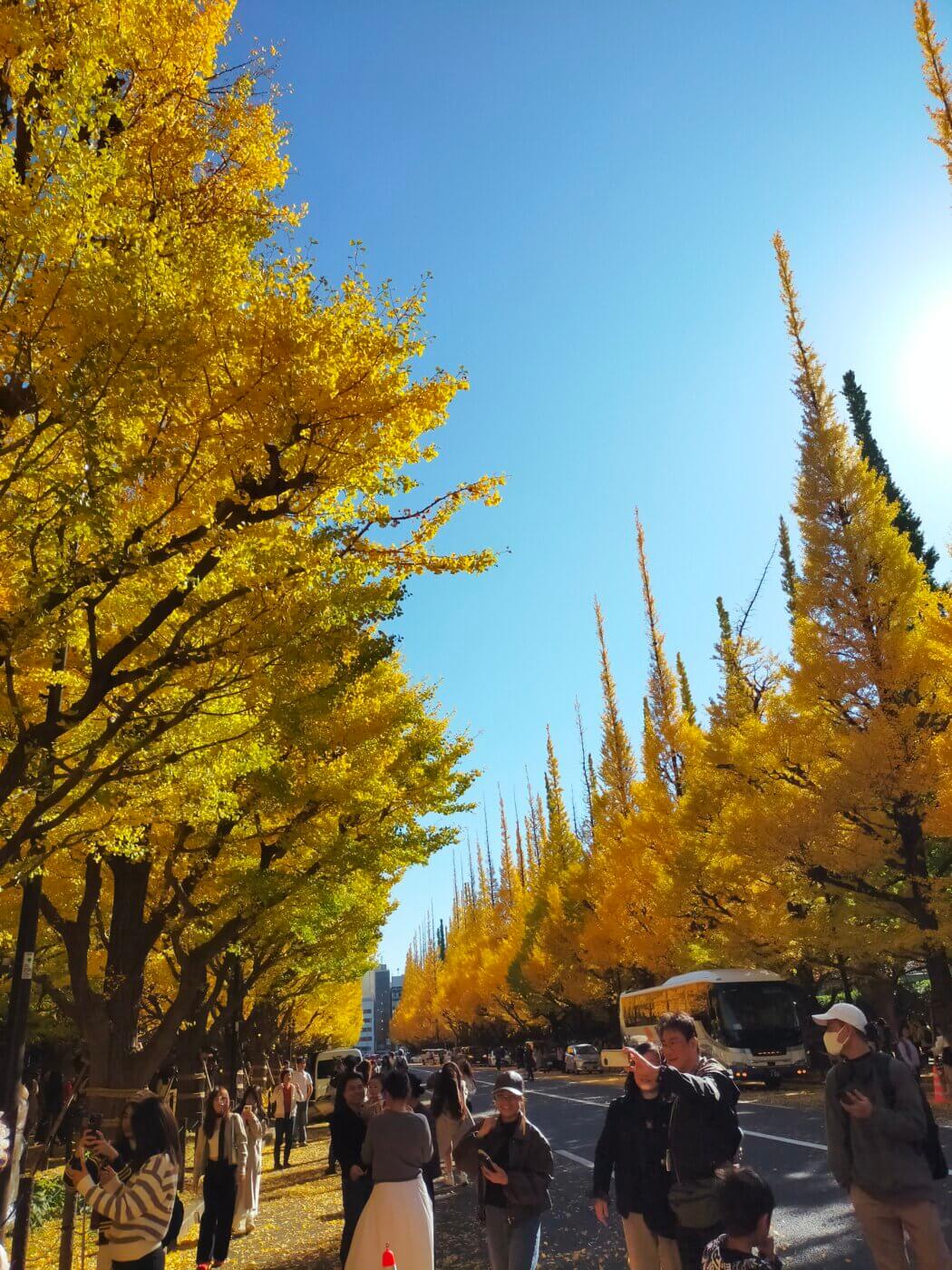 今回イベントに参加した11/27には、いちょう並木の美しい黄葉を楽しむことができました。