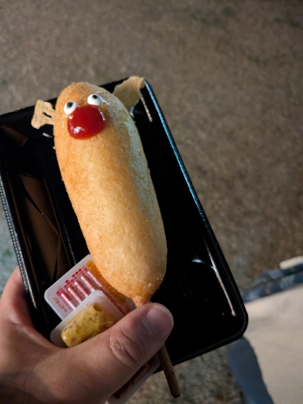 クリスマスソングの定番「赤鼻のトナカイ」をテーマにしたアメリカンドッグ。