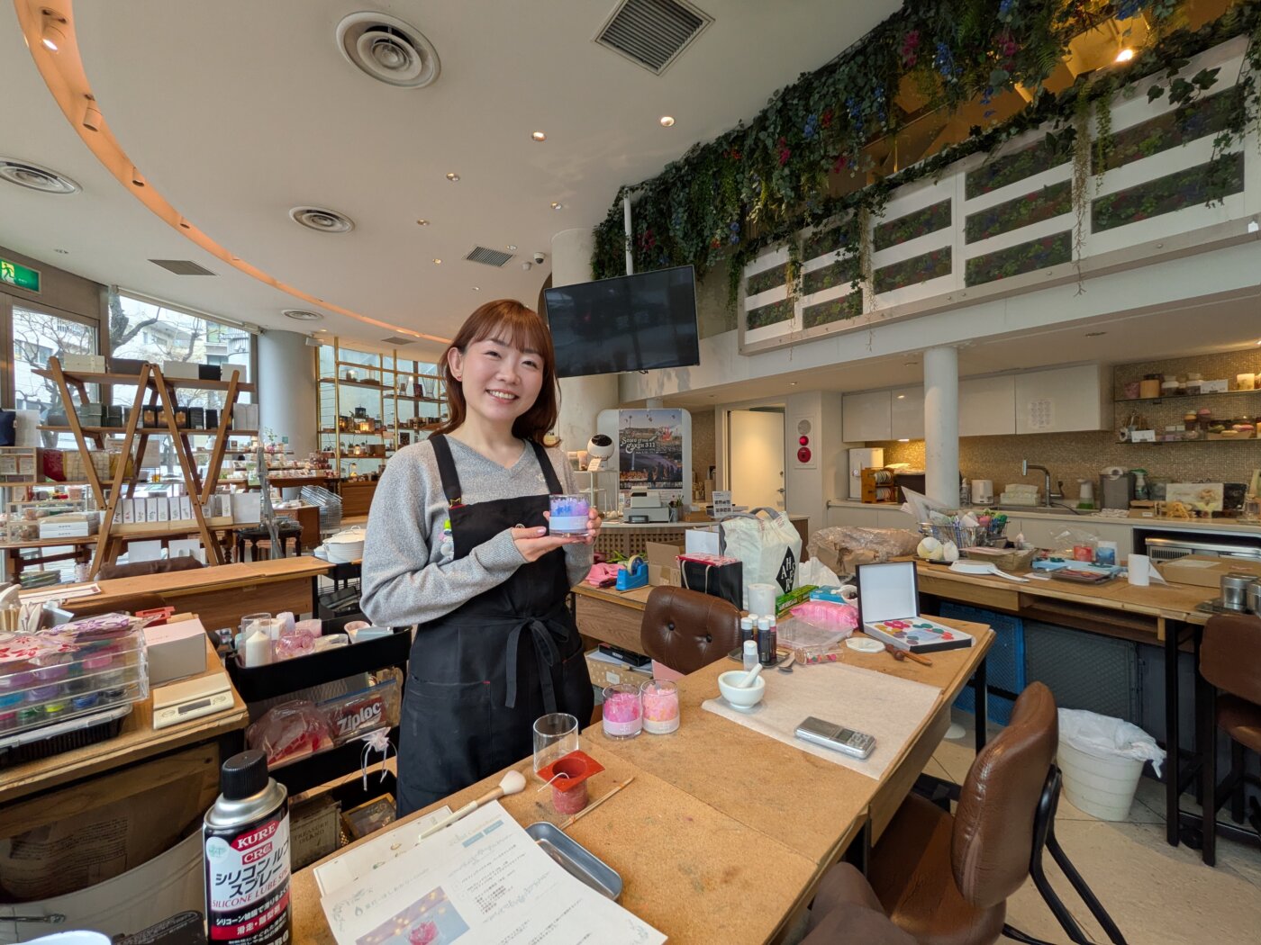 現在キャンドルショップの1Fは、一般向けのショップとスクール。美しいディスプレイは見ているだけでテンションがあがる。