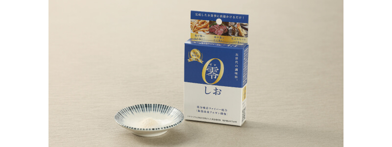 海藻由来の塩分吸着ファイバー(アルギン酸類)を配合した次世代調味料。しっかり塩味を感じつつも、塩分を大幅にカットしてくれます。