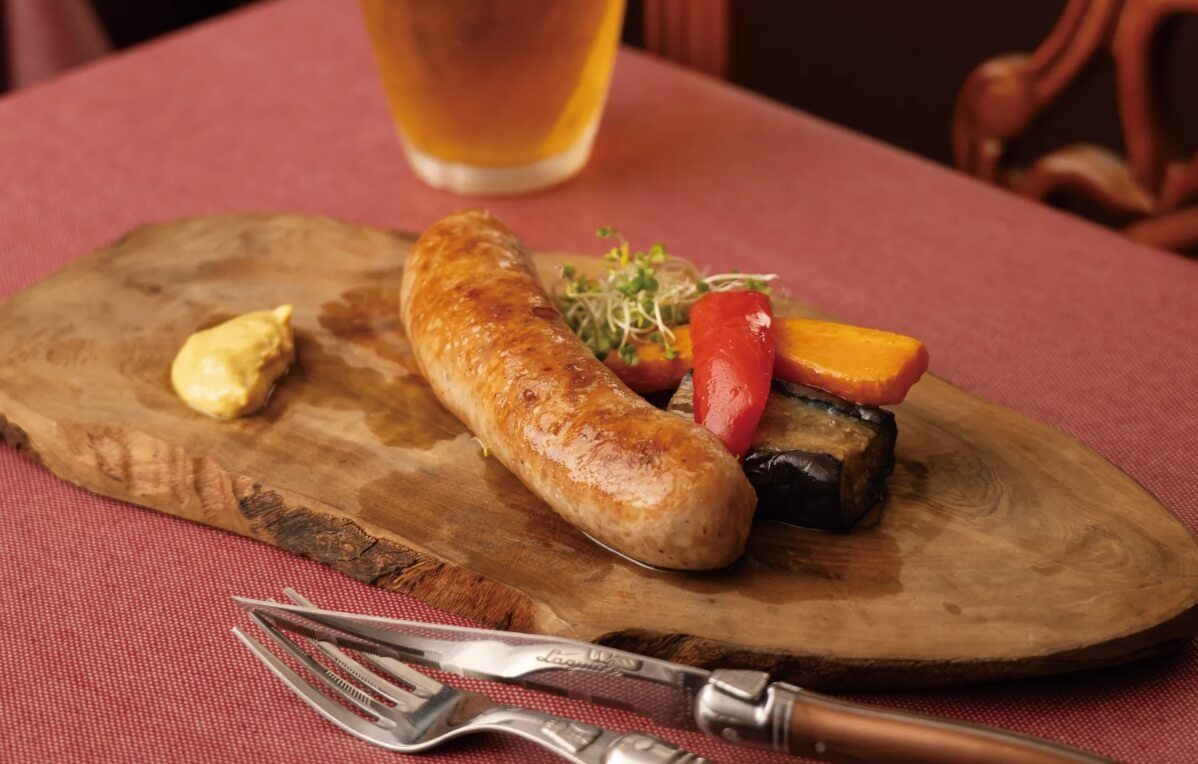 味の奥行きやコクに優れているキビまる豚の味を損なわないよう、味付けはシンプルに。沖縄で「てびち」と呼ばれるコラーゲン豊富なすね肉を使用したフランクフルトは、パリッとした皮からあふれ出す芳醇な脂の甘みが幸せを運んでくれます。季節の野菜とともに、満足度の高いフランクフルトを堪能しましょう。