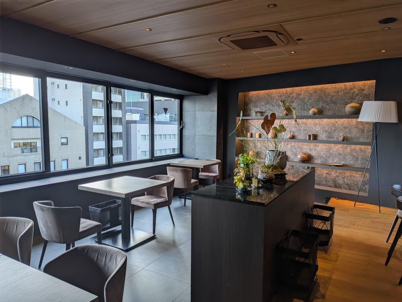四季折々の植栽が散りばめられたモダンな店内。窓の外には、レインボーブリッジや東京タワーなど都心ならではの眺望が広がります。