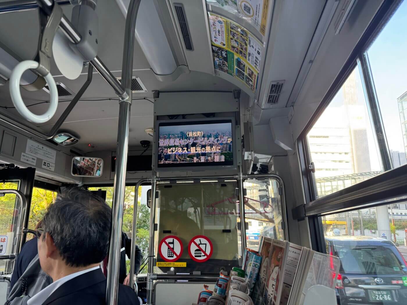 走行中の車内ではエリアのプロモーション映像も放映! 画像提供:一般社団法人 浜松町芝大門エリアマネジメント