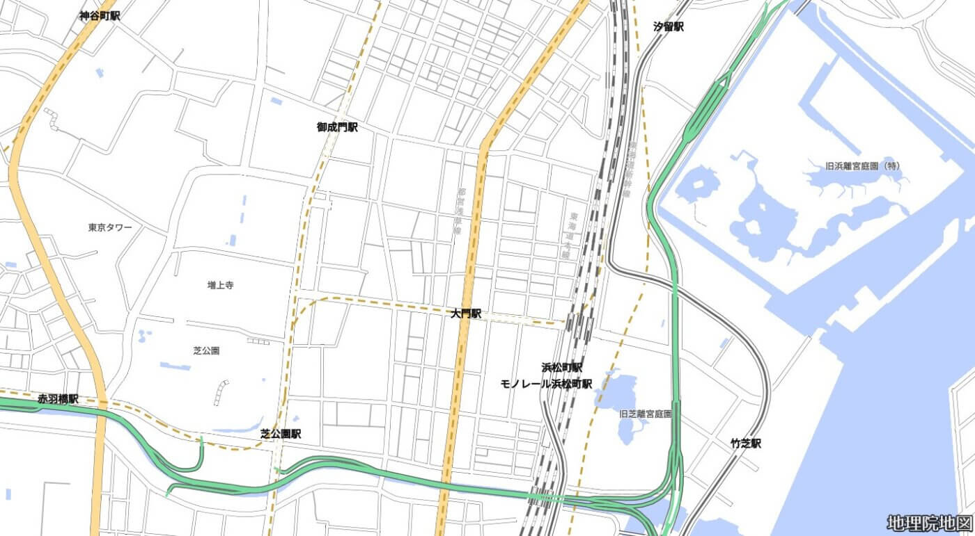 浜松町近辺の鉄道路線図(国土地理院地図より)