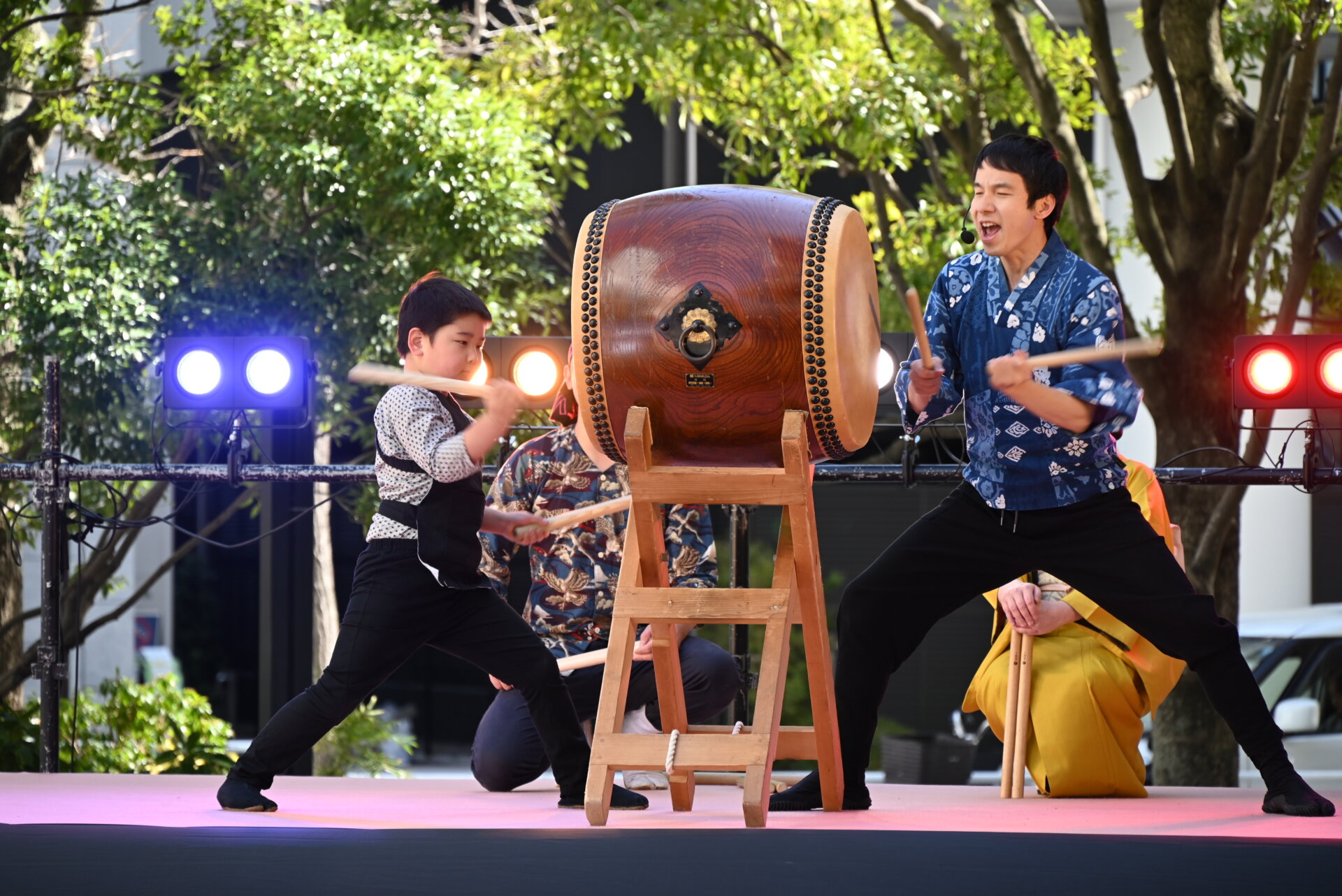 ステージでも午後からは港区で活動する団体「八丈太鼓はなみずき」のメンバーによる八丈島伝統「島太鼓」の演奏が行われ、その後は実際に太鼓を叩けるワークショップも開催されていました。