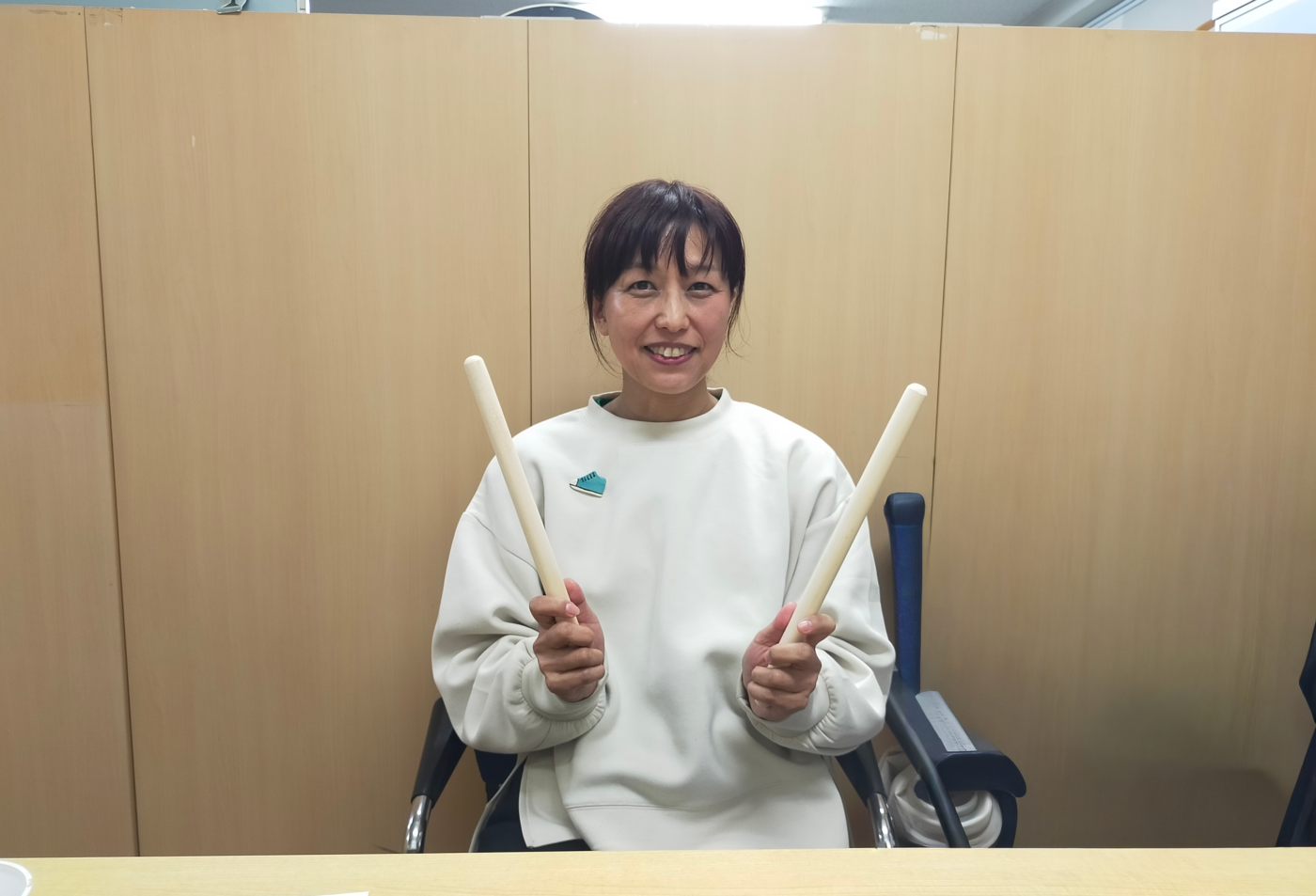 取材にご対応いただいたのは、「源流芝太鼓連(げんりゅうしばたいこれん)」の代表、はたの よしみさん。芝浦港南区民センターで行われる年内最後の練習前に、インタビューをさせていただきました。
