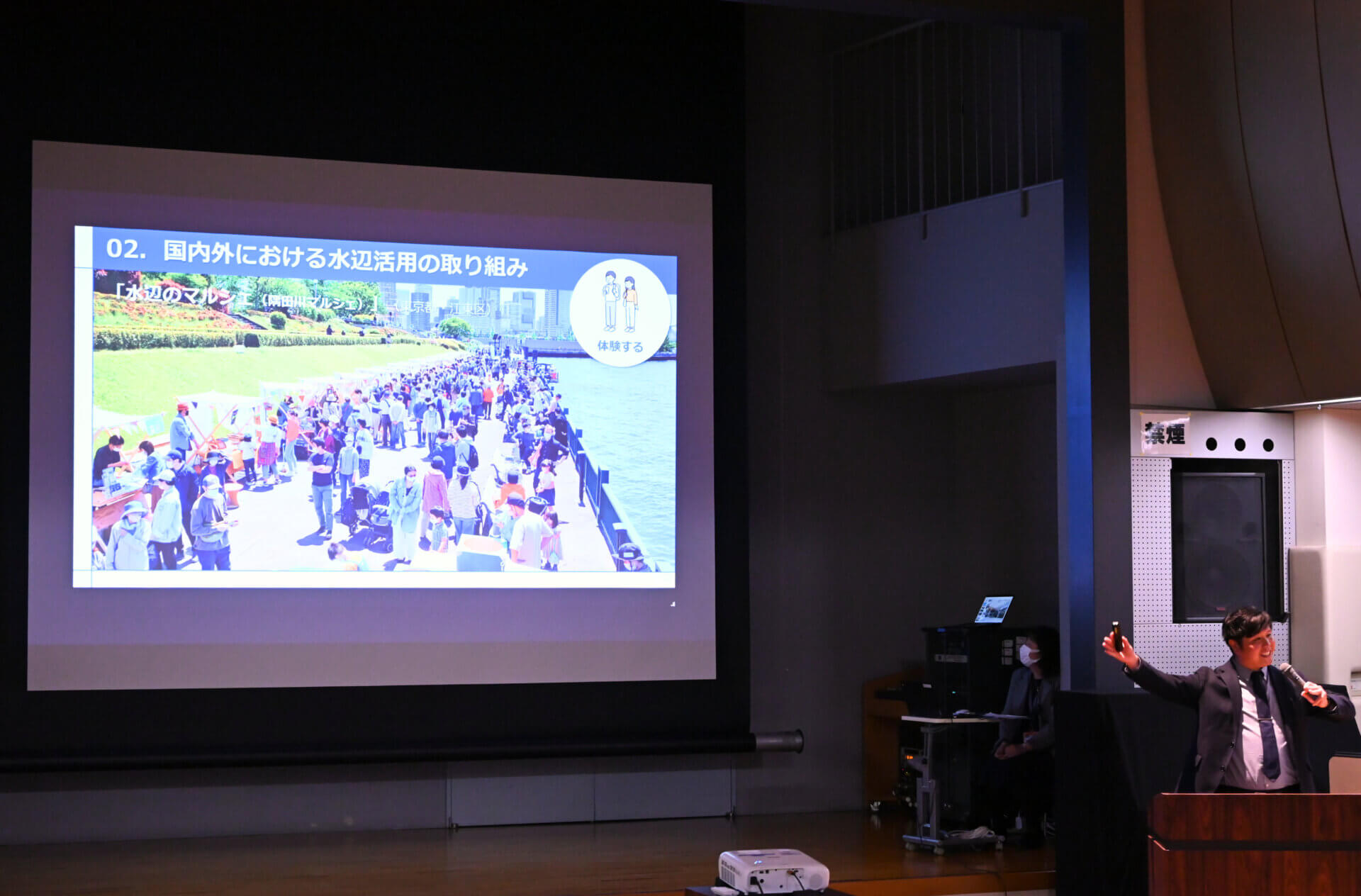 様々な再開発をきっかけに模索が進む港区の水辺活用について、国内外の事例を参考にしながら区民参加型で活用方法を考えていく機会として開催されました。