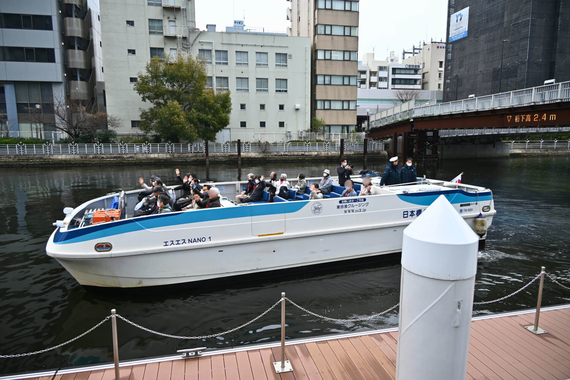 トークセッション後は、一般参加者お待ちかねのクルーズ体験の時間となりました!シンポジウム会場から移動したBLUE FRONT SHIBAURAの船着き場(BLUE FRONT SHIBAURA PIER)は桟橋が完成しており、商業施設と桟橋がつながった水辺とシームレスな空間になっています。